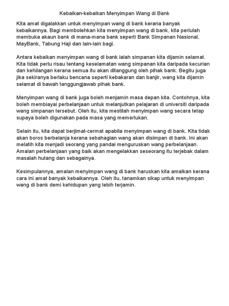 Kebaikan Kebaikan Menyimpan Wang Di Bank Pdf