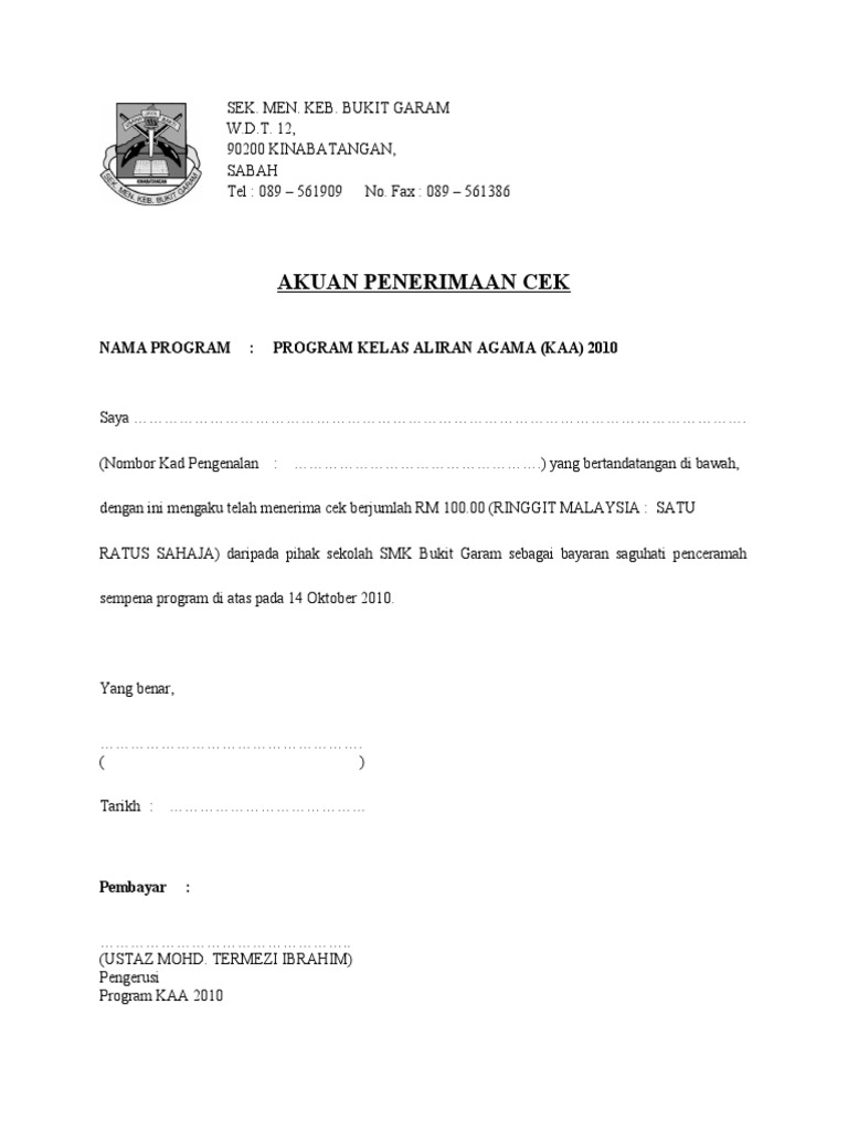 Contoh surat akuan penerimaan bayaran. Contoh surat akuan murid. Surat akuan penerimaan wang bayaran program projek aktiviti kepada unit kewangan bahagian pejabat bendahari universiti teknologi mara saya dengan ini mengesahkan bahawa telah menerima wang sebanyak rm pada daripada untuk bayaran terima kasih tandatangan penerima tarikh nama penerima.